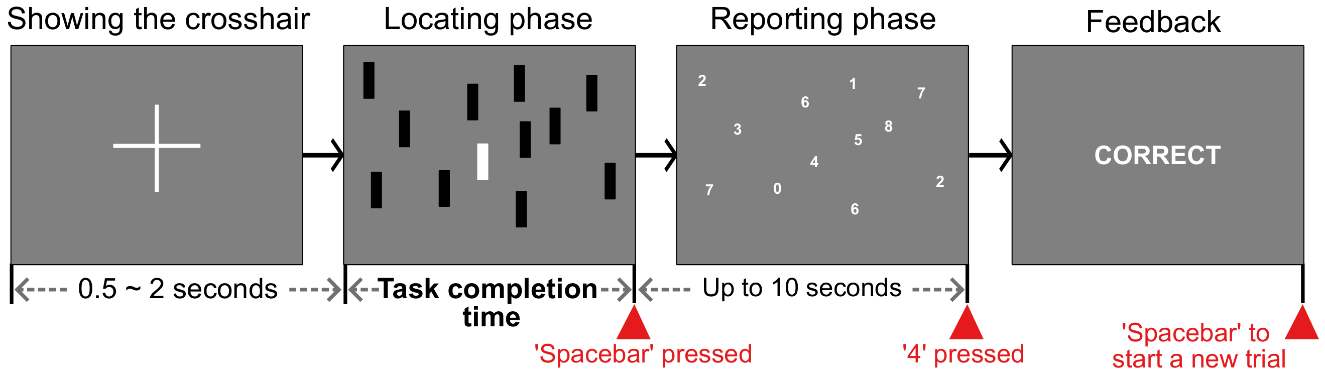This project studies the locatability and locatability robustness of seven visual variables. One typical phenomenon that comes from locatability is the popout effect, which enables a distinct item (the target) to stand out from many others (elements) immediately. But we are still unclear about which factors and how they might affect the selectivity. This project aims to bridge this gap. Through a crow-sourcing study, we examine the visual variables (Hue, Length, Luminance, Orientation, Shape, Size, Single-Hue) and three factors: the layout of all elements (are they in a grid or not?), the location of the target (is the target in the center or periphery of the screen?), and set size (the total number of elements shown). For exploration, I create a visual search playground.
